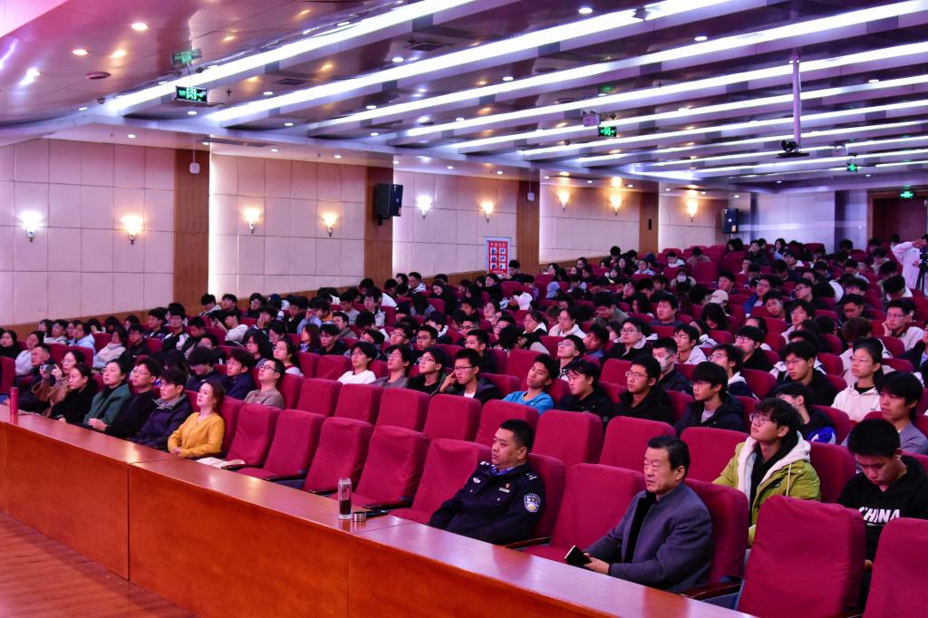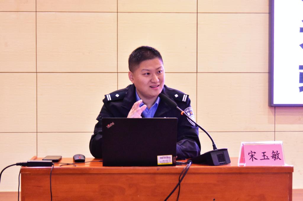 宋玉敏系统剖析了当前网络电信诈骗的发展态势与特点。他重点围绕电信网络诈骗的发展演变、大学生群体易遭遇的刷单返利、冒充熟人、虚假购物、冒充客服、虚假贷款理财等十大高发诈骗类型进行了深入讲解,并结合真实案例,生动揭示了诈骗分子的作案手法与严重危害。宋警官还总结了“八个凡是”“三不一多”等实用防诈口诀,普及了防范成为电诈“工具人”的法律知识,有效提升了师生识诈、防诈、反诈的实战能力。