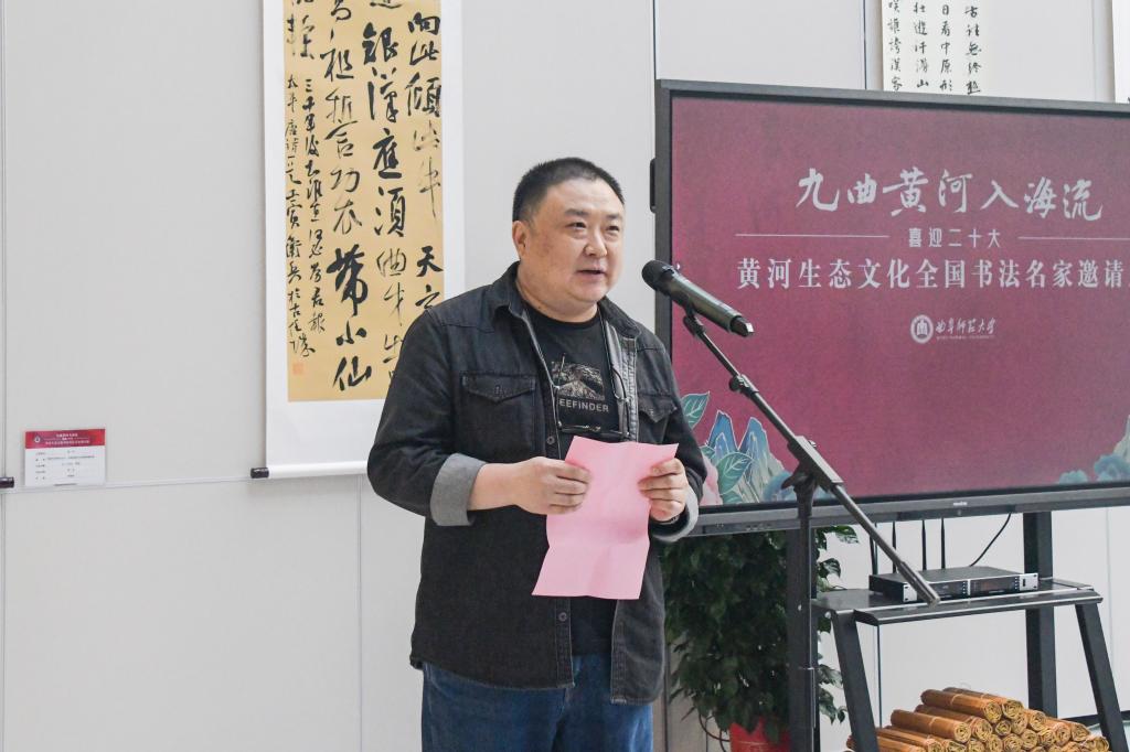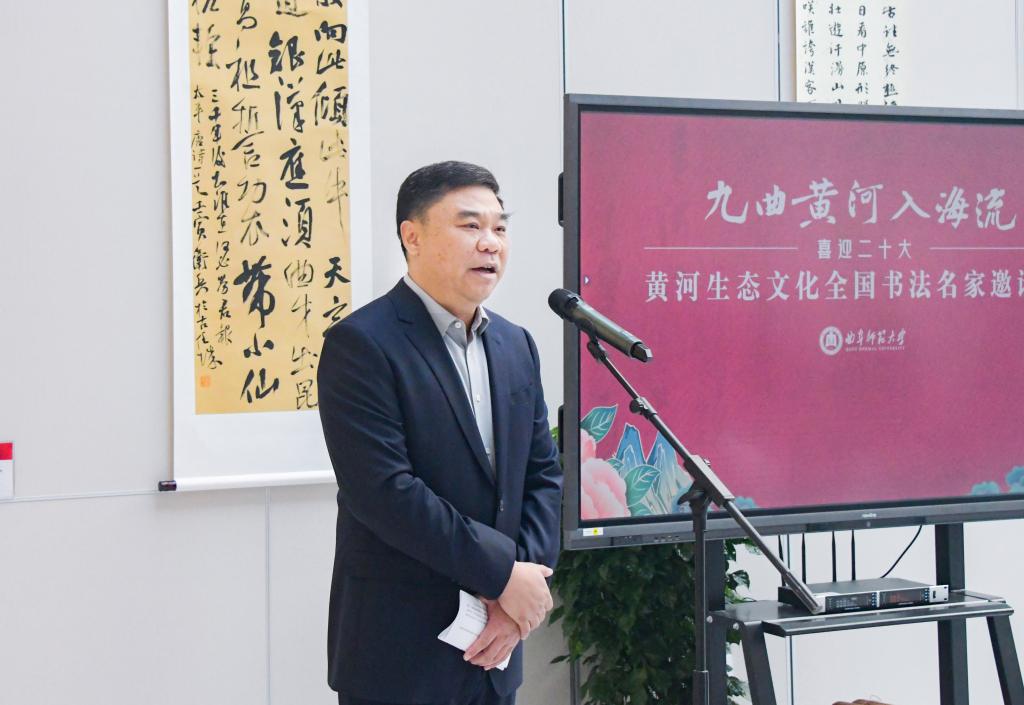 “黄河国家战略与传统文化‘两创’两大时代课题,为本次展览赋予了鲜明主题和丰厚内涵。”开云链接官网党委书记邢光在开幕式上致辞,对莅临展览的各位领导和嘉宾表示热烈欢迎,向长期以来关心支持曲阜师大建设发展的各界朋友表示衷心感谢。邢光指出,曲阜师大认真践行习近平总书记关于中华优秀传统文化“两创”的重要论述和重要指示精神,深入贯彻习近平总书记在深入推动黄河流域生态保护和高质量发展座谈会上的重要讲话精神,在担当“为国弘文”使命、推动黄河生态研究等方面取得了丰硕成果。本次展览是曲阜师大喜迎党的二十大系列活动的重要内容,表达了全校师生与全国各地书法艺术家喜迎盛会的激情与豪迈。