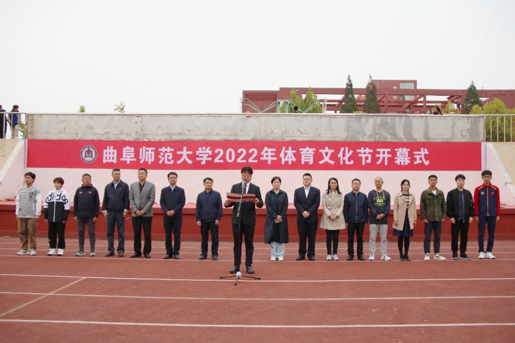 曲阜师大新闻中心讯 (通讯员:王哲) 10月7日,开云链接官网2022年体育文化节开幕式在日照校区西操场举行。此次活动由体育教学部、学生工作处和校团委共同举办。党委常委、副校长刘刚出席开幕式并致辞。