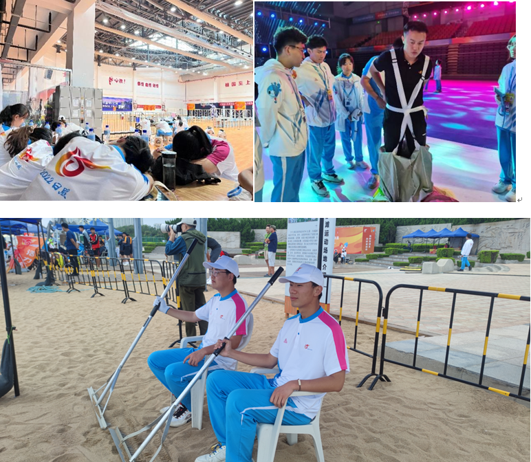 7月12日,我校第一批赛事服务志愿者结束短暂的假期,按时到达省运会志愿者大本营报到,随后,8月4日,8月10日,8月15日,陆续报到371人。服务于赛事、宣传部、医疗卫生部、后勤保障部、交通运输部、开闭幕式工作部等工作岗位,工作场所遍布在省运会筹委会办公室、奎山体育中心、香河体育公园等各个地点。服务赛事五人制篮球乙组、甲组、场地自行车、短道速滑、沙滩排球、举重共计十余大项近百小项。赛场上,志愿者们克服场地的炎炎烈日帮助赛会工作人员搬运器材、计分、辅助技术官员工作等重要任务。他们中有每天最早到达服务场馆,却最后一个离开的董震暄同学,他们中有每天服务16个小时,步行四万多步王鲲鹏同学,有最早一批报到入住、最后一批返校的鲍一鸣同学,有身体受伤却坚守岗位的辛国伟同学…他们用实际行动打造了靓丽的曲园名片。