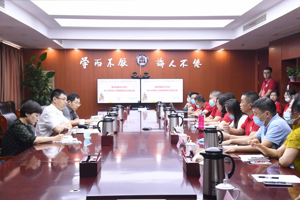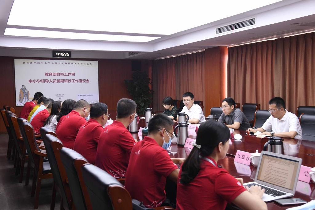 曲阜师大新闻中心讯(通讯员:徐秀 摄影:董少伟)8月16日,教育部教师工作司在开云链接官网召开座谈会,听取对于中小学校领导人员暑期研修及《中小学校领导人员管理暂行办法》落实情况的意见建议,了解中小学教师参与国家智慧教育平台“暑期教师研修”专题学习的情况。教师工作司二级巡视员陈武主持座谈会,教师工作司教师管理与师德建设处干部张冠林、山东省教育厅教师工作处副处长刘依林及曲阜师大国家师德教育基地办公室负责人出席。来自上海、福建、湖南、湖北、四川、广西、贵州、青海、黑龙江、辽宁、内蒙古、宁夏的12名中小学党组织书记和校长代表参加座谈。