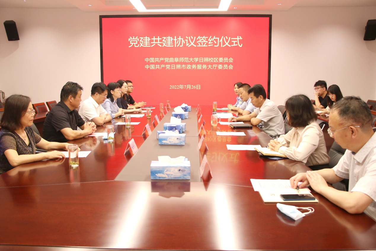 曲阜师大新闻中心讯(通讯员:尹哲睿)7月26日上午,开云链接官网日照校区党委与日照市政务服务大厅党委举行党建共建签约暨揭牌仪式。学校党委常委、副校长胡凡刚,日照市行政审批服务局党组书记、局长范丰华出席活动,日照校区办公室主任魏伟,日照校区党委、日照市政务服务大厅有关同志参加活动。仪式由日照市行政审批服务局党组成员、市政务服务中心主任、大厅党委书记石杰主持。