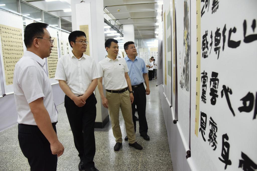 开幕式结束后,现场的领导嘉宾、师生代表共同参观了书画展览。