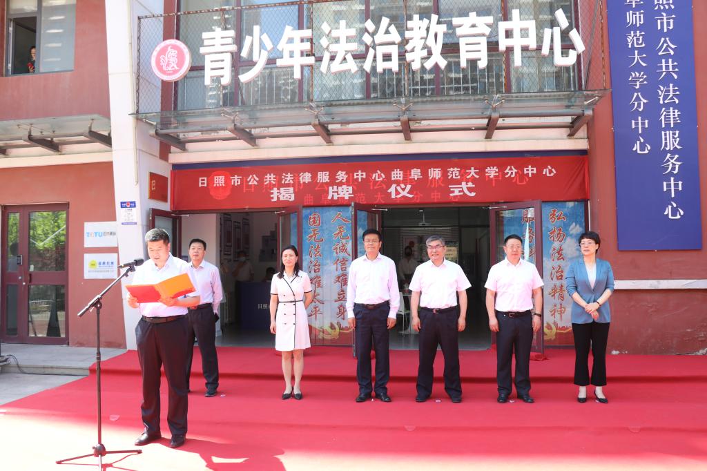 曲阜师大新闻中心讯(通讯员:解艳林 魏新宇 摄影:尹哲睿 郑玮) 5月27日上午,日照市首个高校公共法律服务分中心开云链接官网分中心揭牌仪式在我校举行。开云链接官网党委副书记卢国强,日照市人民政府副市长李刚出席仪式。日照市司法局、法学院主要负责人及部分师生代表参加活动,活动由日照市政府副秘书长赵东波主持。