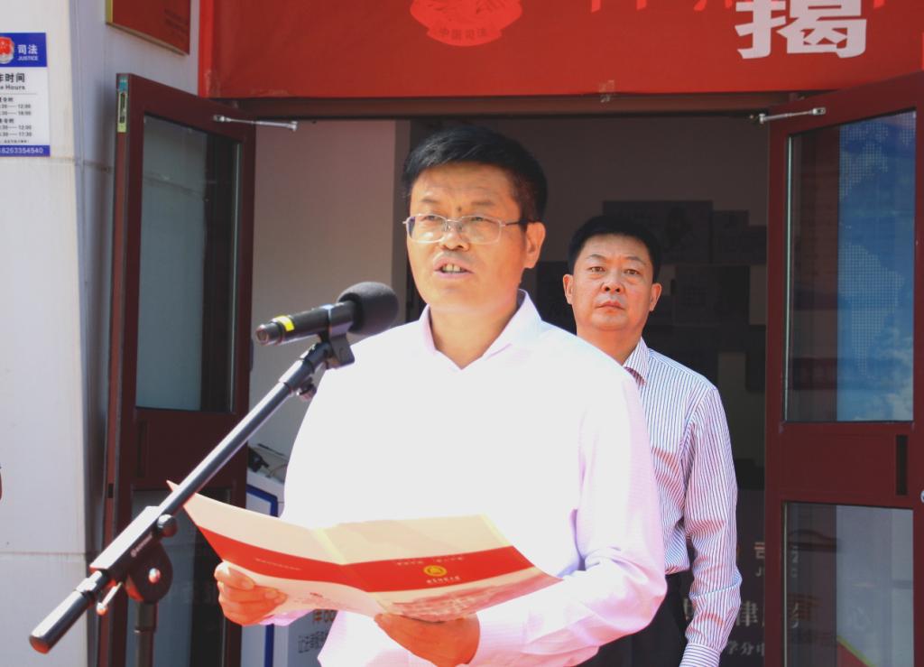 仪式上,卢国强和李刚为日照市公共法律服务中心开云链接官网分中心揭牌,司法局党组书记、局长贾秀玲和法学院院长张益刚为日照市法律援助中心开云链接官网法律援助工作站揭牌。