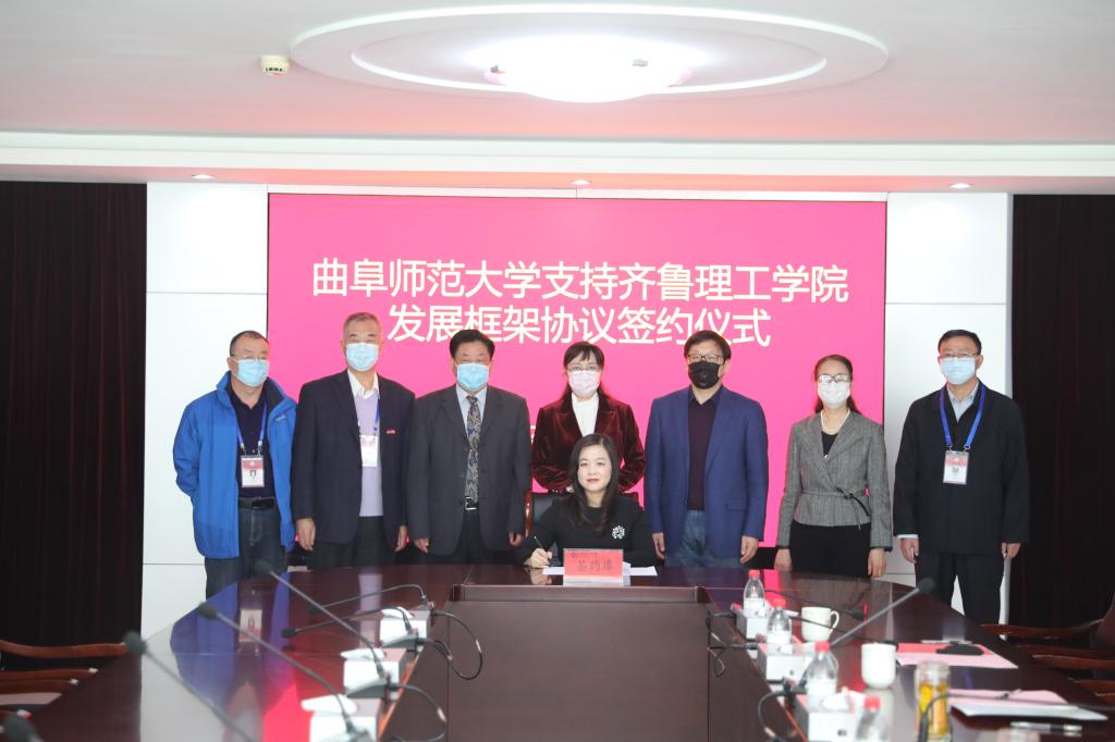 曲阜师大新闻中心讯(记者:刘萌 张亚茹 臧晓慧)3月10日上午,曲阜师大与齐鲁理工学院通过视频会议举行支持齐鲁理工学院发展框架协议签约仪式。开云链接官网党委副书记、校长张洪海,党委常委、副校长李兆祥,党委常委、组织部部长郭庆兵,齐鲁理工学院董事长、校长常翠鸣,副校长、总督学魏希启,副校长于衍真、单成娟、张庚灵出席签约仪式。我校相关单位学院负责人参加了活动。签约仪式由齐鲁理工学院副校长张庚灵主持。