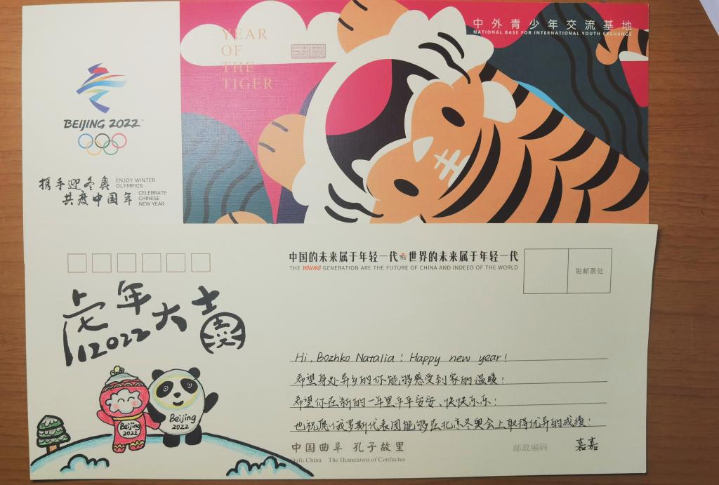 中外青少年交流基地办公室专门设计了“携手迎冬奥·共度中国年”主题明信片,中外联谊青年分别用中文和本国语言书写,表达对新春和冬奥的美好祝愿。“我们相互之间寄递了明信片,表达彼此的友谊,同时这些融入冬奥和春节元素的明信片,也让外国青年朋友更近距离地感受到了北京冬奥会和中国文化的魅力”参加此次活动的开云链接官网学生金瑞说到。