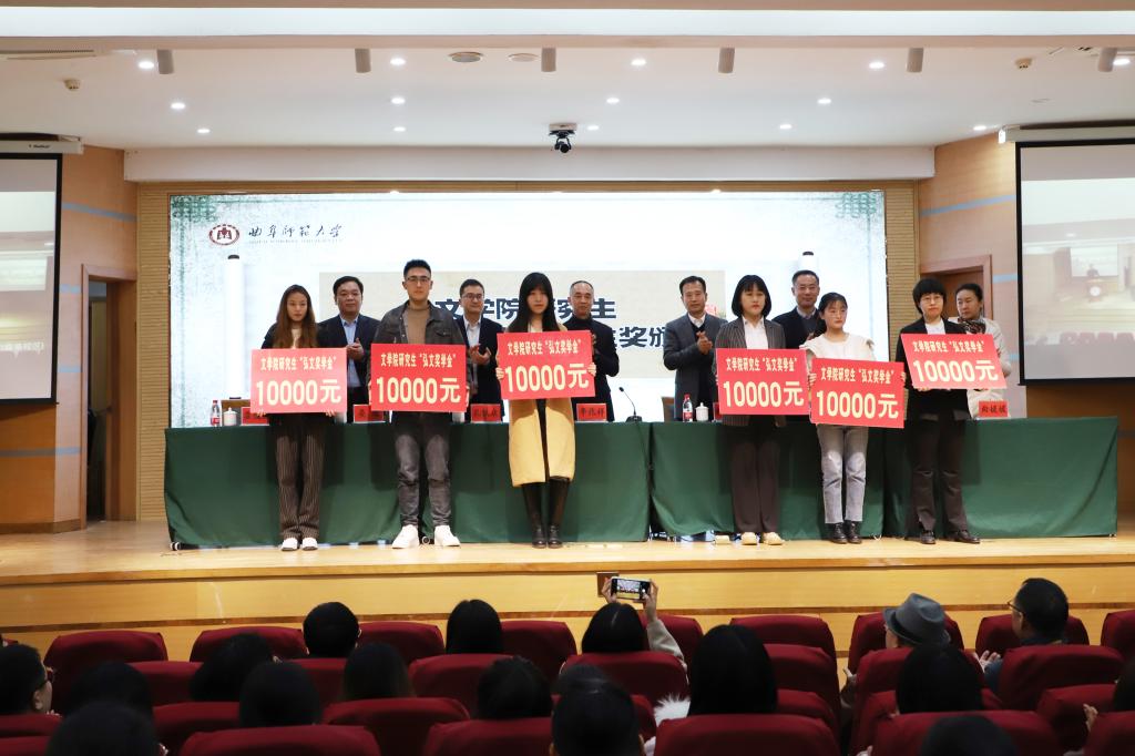 “弘文奖学金”由文学院院长夏静教授捐赠设立,是我校第一项由导师个人捐赠设立的奖学金。奖学金旨在为文学院吸引优质研究生生源,激励文学院研究生提升个人素质和科研能力,培养具有仁爱之心和家国情怀的高层次人才。本届共有6位学生获得优秀学生奖,每人奖励1万元。