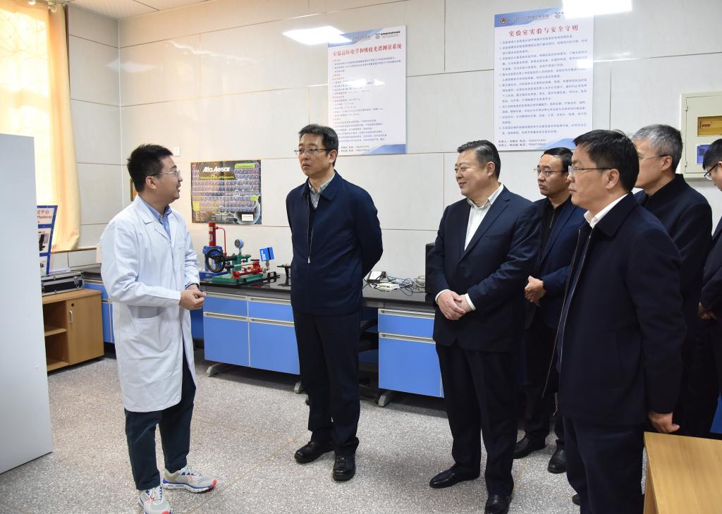 会后,潘军一行参观考察了学校重点实验室,参观了实验室仪器设备,了解实验室在人才培养、团队建设、科研成果、服务地方等方面的情况,希望实验室继续加强团队建设,通过人才引进培养,产出更多研究成果,多与行业企业开展横向、纵向研究,利用现有平台积极进行成果转化,积极服务地方发展。
