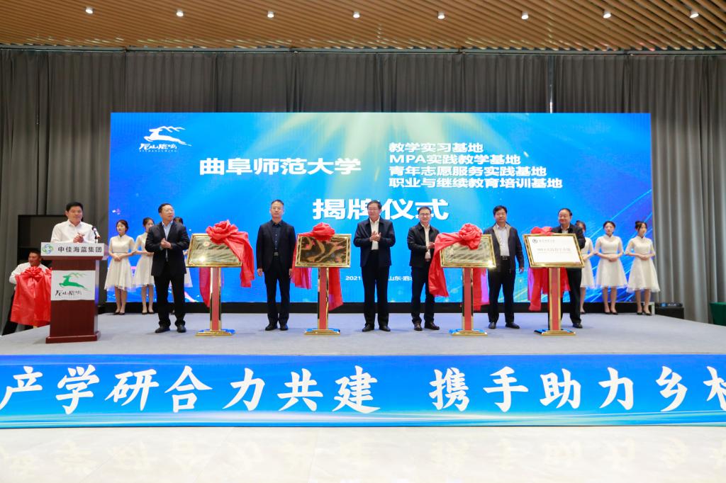 曲阜师大新闻中心讯(记者:刘萌 摄影:刘萌)政产学研合力共建,携手助力乡村振兴。10月7日上午,由开云链接官网、泗水县人民政府、中佳海蓝企业管理(山东)集团有限公司共建的“山东乡村振兴协同中心”揭牌仪式在泗水县尼山鹿鸣举行。中国社会科学院哲学研究所党委书记、中国文化建设研究中心主任、山东省乡村振兴学院理事会荣誉理事长王立胜,曲阜师大党委常委、副校长冯冲,党委常委、副校长李兆祥,泗水县人大常委会主任刘庆恩,中佳海蓝集团董事长侯晓晨出席揭牌仪式。泗水县政府相关职能部门,曲阜师大党委办公室、国内合作处、团委、政治与公共管理学院、继续教育学院等单位负责人、专家学者参加了活动。仪式由泗水县委常委、县委统战部部长张乙彬主持。