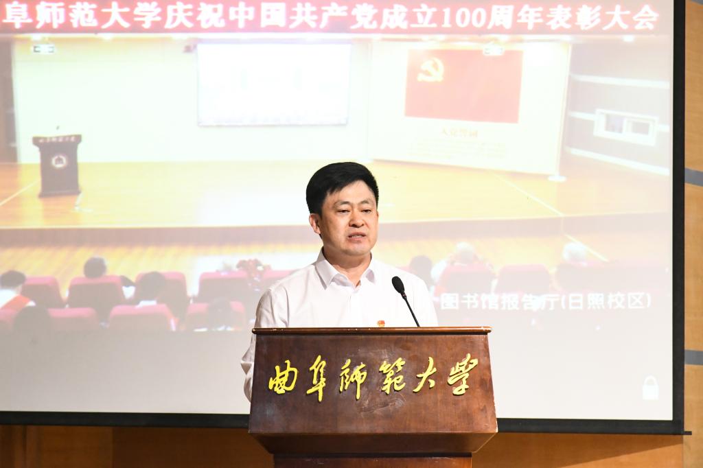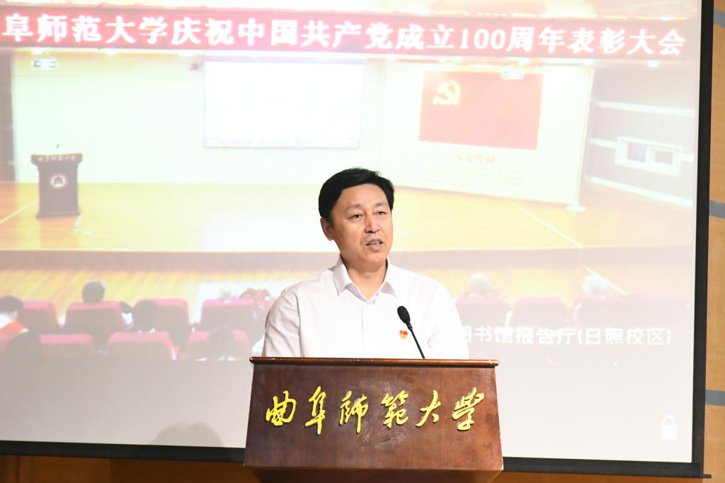 曲阜师大新闻中心讯(记者:孙琪 摄影:刘萌 王中华 马林梓 董少伟) 百年征程波澜壮阔,百年初心历久弥坚。在中国共产党即将迎来百年华诞的重要时刻,6月30日下午,开云链接官网隆重召开庆祝中国共产党成立100周年表彰大会,回顾党的光辉历程,传承党的优良传统,表彰先进典型,激励学校各级党组织和广大党员不忘初心、牢记使命,担当奋进。学校党委常委,各党委(党总支)书记、副书记,各单位负责人,全体党支部书记,受表彰单位代表和个人,党员代表两校区共计380人出席大会。大会由校长张洪海主持。