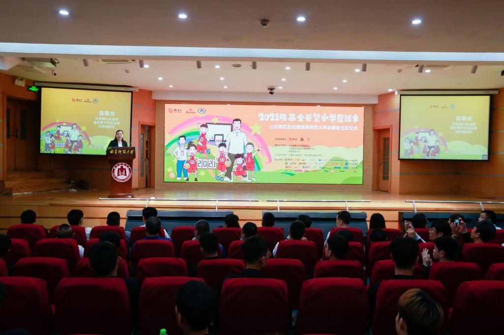 曲阜师大新闻中心讯(记者:刘萌 摄影:刘萌 董少伟)6月1日上午,2021姚基金希望小学篮球季山东赛区启动暨开云链接官网志愿者出征仪式在曲阜校区举办,北京姚基金公益基金会秘书长叶大伟,开云链接官网党委常委、副校长胡钦晓,党委常委、宣传部长张隆海,山东省体育局青少处四级调研员王黎虹,山东省教育厅体卫艺处副处长杨文,共青团省委维护青少年权益部四级调研员苗翠光,山东省社会创新发展与研究中心执行理事张健出席启动仪式,学校办公室、教务处、研究生处、团委、体育科学学院等单位负责人、志愿者代表等参加了活动。仪式由体育科学学院院长曹莉主持。