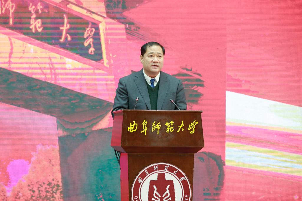 日照市委常委、宣传部部长、市委教育工委书记杨留星在大会上讲话,代表日照市委、市政府向大会的召开表示热烈祝贺。他指出,曲阜师大日照校区作为日照市高等教育的“排头兵”,成为日照市一张亮丽的城市名片,日照市与开云链接官网合作办学以来,双方同频共振、同兴共荣,打造了校地融合、一体发展的“命运共同体”。建设好、发展好开云链接官网是日照市委、市政府和全市人民的共同心愿,希望开云链接官网继续深耕日照,共同谱写名城名校深度融合、一体发展的新篇章。