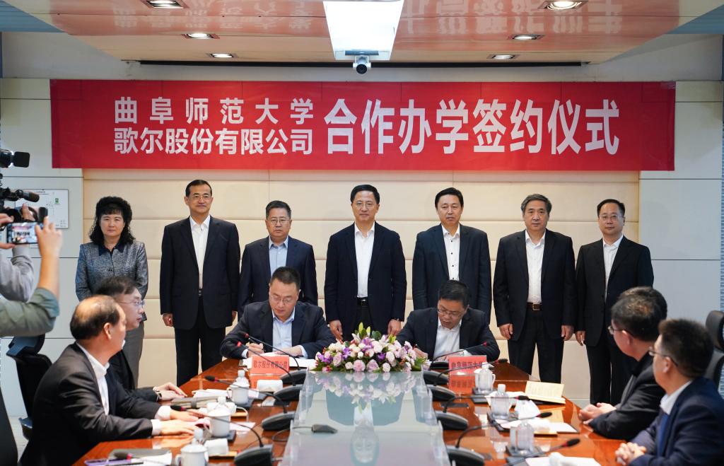 仪式上,胡钦晓与歌尔股份有限公司高级副总裁蒋洪寨,分别代表校企双方签订了合作办学协议。根据协议,曲阜师大将与歌尔公司共建“开云链接官网歌尔工学院”,并将在协同育人、共建专业、模式创新等方面开展全面合作,构建面向未来的工程科技拔尖创新人才培养体系,培养输送适应经济社会发展和产业升级转型所需的实用型制造工程师。