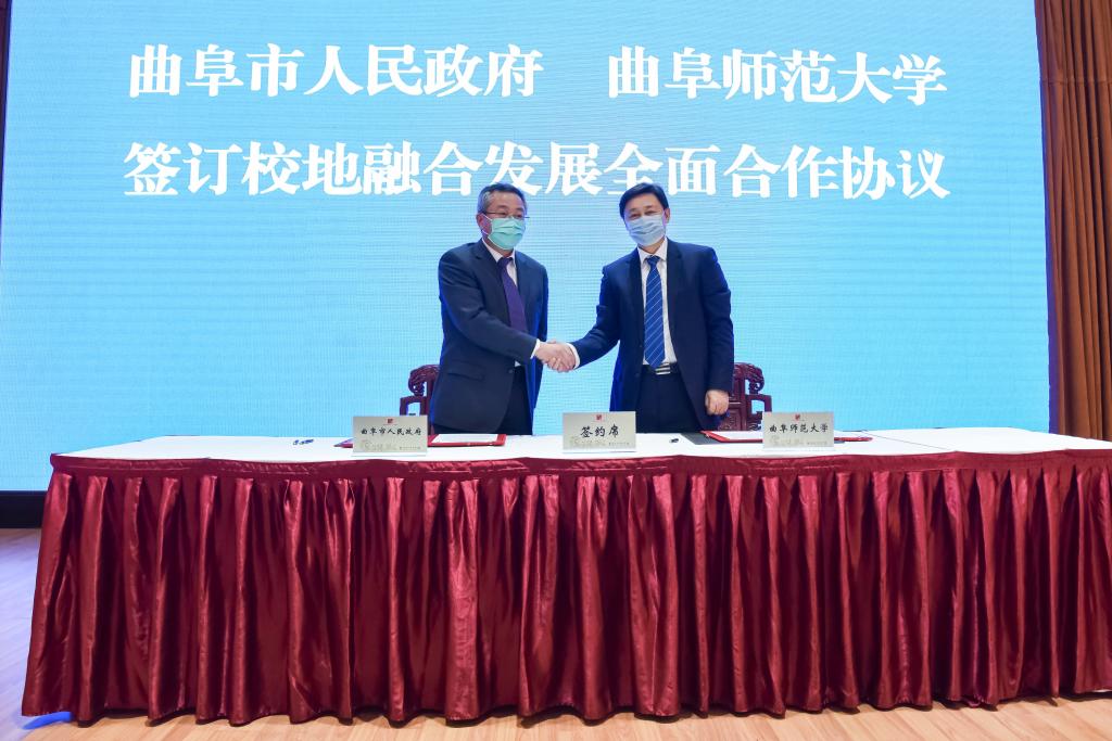 戚万学表示,此次校地融合发展全面合作协议的签订,开启了名校名城发展的崭新篇章。曲阜师大将切实增强学校发展与曲阜经济社会发展需求的适应度、学科专业与曲阜产业发展的契合度、人才智力支撑与服务曲阜的贡献度,进一步在高端人才培养集聚、高端技术应用研究、高新技术成果孵化、高质量教育供给、高水平文化“两创”成果、高水准国际学术交流等方面,加强与曲阜市委、市政府的全方位合作,擦亮市校合作“升级版”名片,形成“名城带名校、名校促名城”的良好局面。