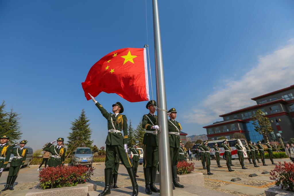 我校国旗护卫队在蒙山脚下举行庄严隆重的升旗仪式,在雄壮的国歌声中,师生肃立目视冉冉升起的国旗,接受革命精神的洗礼。随后,师生漫步悬崖栈道登顶蒙山,在蒙山党性教育基地参观了革命历史展馆和蒙山七二〇转播台旧址,共同感悟沂蒙精神的精髓。