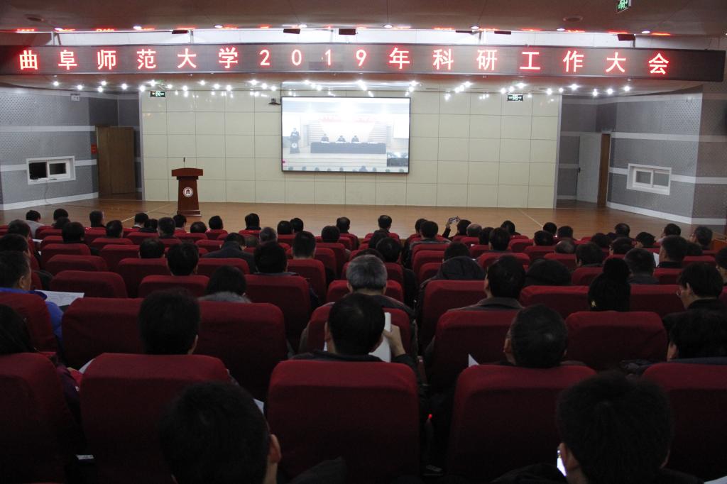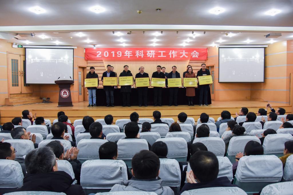 党委书记戚万学主持会议并发表讲话,校长张洪海发表讲话,副校长夏云杰作科研工作报告,副校长冯冲宣读了表彰2018年度科研工作先进单位、优秀科研工作者及科研管理先进个人的决定。