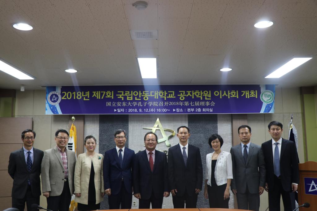 我校代表团受到了韩国安东大学校长权泰桓的热烈欢迎,双方就近年来两校的合作进行了充分交流。9月12日,代表团参加了由安东大学孔子学院举办的第五届中韩儒学人文交流大会;下午参加了孔子学院第七届理事会。理事会上,各位与会理事听取了孔子学院外方院长关于2018年工作总结、经费运营和2019年工作计划的汇报,并就孔子学院的发展规划进行了深入讨论。各位理事一致表示将不遗余力支持和配合孔子学院的各项工作,促进两校青年学生之间开展丰富多样的交流活动,为孔子学院各项事业健康发展共同努力。
