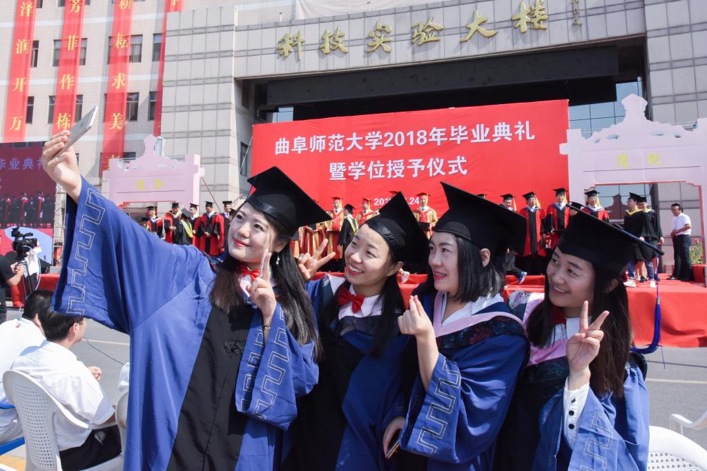 首次通过视频在曲阜、日照两校区同步举行毕业典礼。典礼现场,两校区师生通过大屏幕互相挥手致意、隔空连线传情,张张笑脸、阵阵欢呼让儒风海韵的曲园风华与浓情溢出屏幕、注满心间。首次通过网络平台进行现场直播毕业典礼,近6万人“天涯共此时”,实时收看了典礼盛况,并纷纷在线留言,为毕业生祝福、为美丽曲园喝彩。首次为本硕博毕业生统一举行典礼、颁授学位,首次实现毕业生代表和教师代表两校区互动交流发言,首次设置家长代表发言环节。学校还向现场参加毕业典礼的每一位家长赠送了具有曲园特色的纪念礼品。