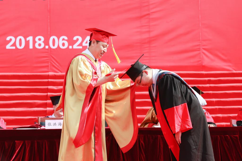 张洪海代表学校,向顺利完成学业的同学们表示最热烈的祝贺,向精心培育他们的老师、付出辛勤养育的父母、给予支持鼓励的亲友,致以最诚挚的感谢和最崇高的敬意。