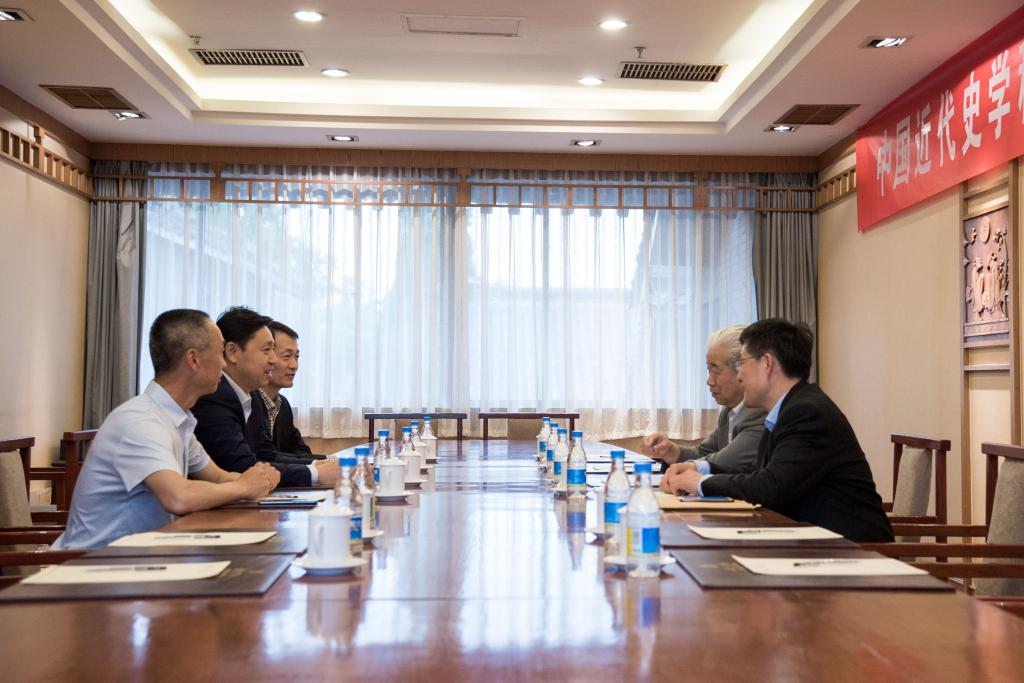 5月4日下午,中国社会科学院学部委员张海鹏先生受聘我校特聘教授,校长张洪海为张海鹏先生颁发聘书,并举行座谈。我校历史文化学院、人才工作处、研究生处负责人参加座谈。
