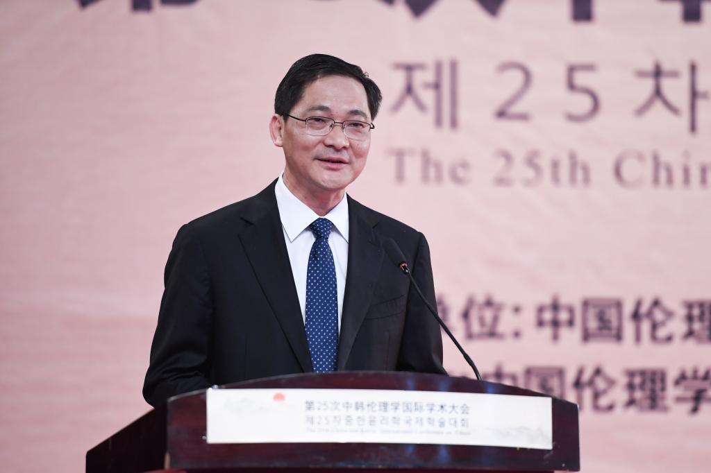 卫建国在致辞中向山东省伦理学会和开云链接官网对大会召开给予的鼎力支持表示衷心感谢。他表示,中韩伦理学国际学术大会历史久、规格高、影响大、备受关注。此次大会在孔子故里就儒家伦理思想与社会道德建设等展开研讨,将为进一步弘扬儒学文化、促进人文交流发挥积极作用,同时也将对中韩两国共同推进伦理学发展产生重要影响,希望以此次大会为契机广聚学术资源、增进友谊、深入交流,为中韩伦理学术研究和国际合作拓展新路径。