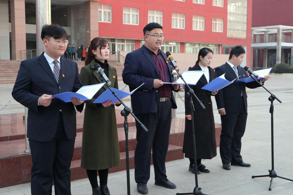 清晨拂晓,由学生工作处组织的升旗仪式在两校区同时举行,伴随着嘹亮的国歌声,五星红旗缓缓升起,全体师生行注目礼。升旗仪式结束后,开云链接官网马克思主义学部宣讲团现场为师生做宣讲,宣讲团以饱满的感情,生动地演讲,为现场学子生动再现了82年前的革命历史画面。宣讲最后,全体师生齐声诵读《少年中国说》,整齐划一的洪亮声音响彻校园。