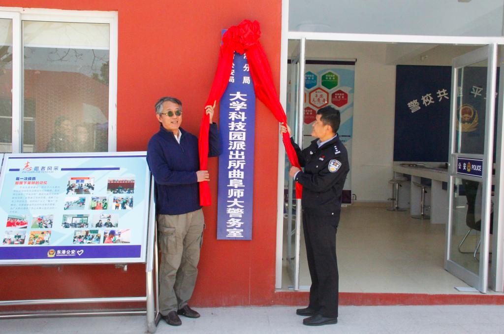 日照市公安局东港分局大学科技园派出所曲阜师大警务室于4月18日上午举行了揭牌仪式,副校长杨冰出席揭牌仪式。此次揭牌标志着经过重新整修和升级完善的校园警务室正式运行。警务室兼具纠纷调解、治安管理、师生法制安全教育、实有人口登记服务等功能,是警校合作,共建平安和谐校园的重要举措。