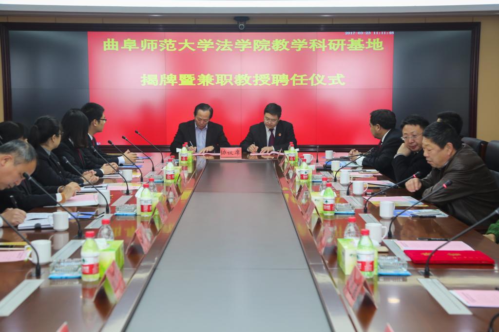 3月23日上午,我校法学院教学科研基地揭牌暨兼职教授聘任仪式在莒县人民法院举行,副校长杨冰,莒县人民法院党组书记、院长郑家泰出席仪式,法学院相关负责人参加此次活动。