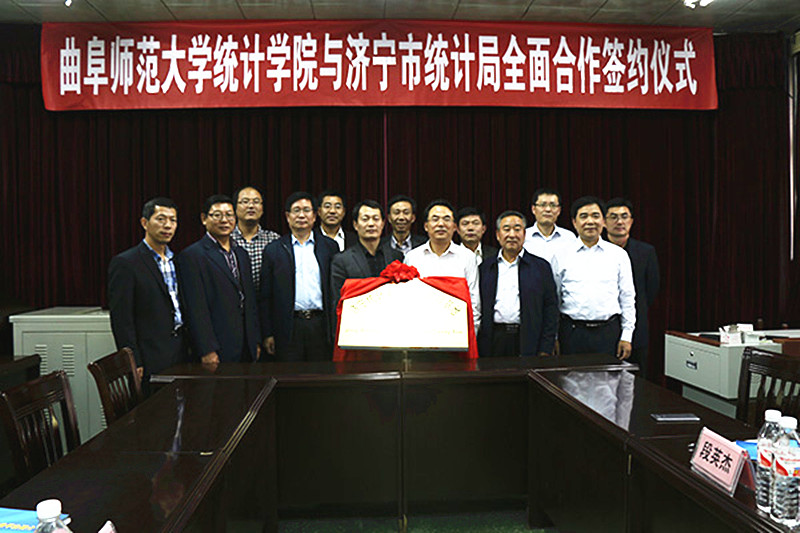 近日,统计学院与济宁市统计局签订全面合作协议。数学与统计学院党委书记王方立、统计学院院长尹传存、党委副书记王作茂、教学科研负责人赵胜利、济宁市统计局局长徐兴华、调研员姜守员、副局长王敦广、副调研员刘振,统计学院全体辅导员及济宁统计局职能部门负责人等出席签约仪式。仪式由数学与统计学院党委书记王方立主持。