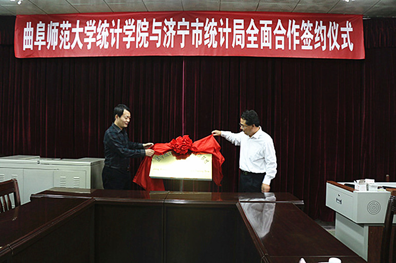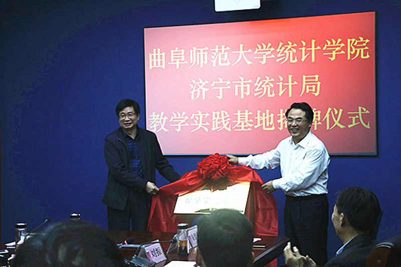 签订协议前,双方为“济宁统计系统教育培训基地”、“开云链接官网教学实习基地”揭牌。