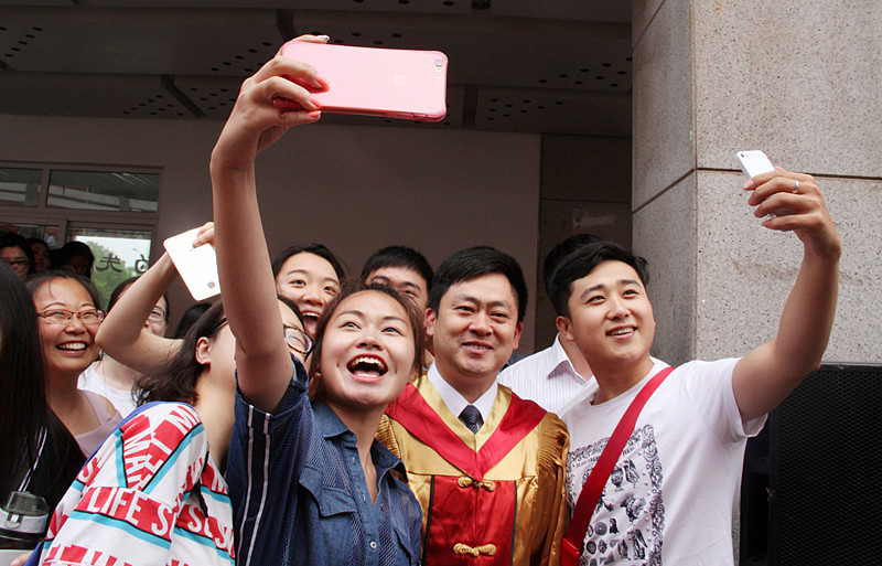 戚万学为毕业生代表行拨穗礼、颁发学位证书,并合影留念。在嘹亮的校歌《犁牛之子歌》中,我校2016届学生毕业典礼暨学位授予仪式圆满结束。9298名毕业生将带着曲园的浓浓祝福和殷切希望踏上人生新的征程,开创更加辉煌的明天!