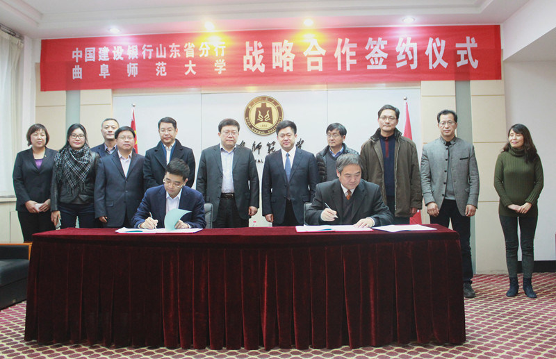 12月10日,我校与建设银行山东省分行签署全面战略合作协议。校长戚万学,副校长马东骅、王继锁,建行山东省分行副行长朱治昌出席仪式。建行山东省分行、济宁分行、曲阜支行,我校学校办公室、财务处负责人参加仪式。学校办公室主任夏云杰主持仪式。