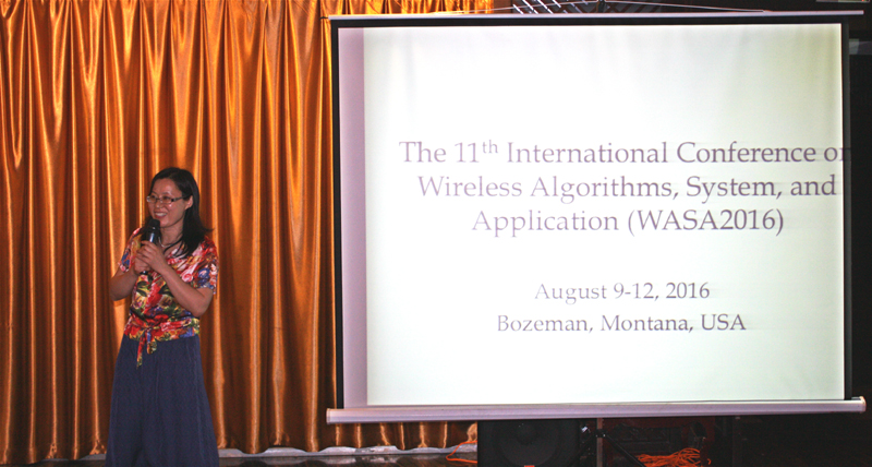 乔治华盛顿大学成秀珍教授主持了8月10日晚的交流活动,上海交通大学朱浩瑾教授为本次优秀论文进行颁奖,WASA2016主办方蒙大拿州立大学Qing Yang教授陈述了下届会议的基本策划组织情况。