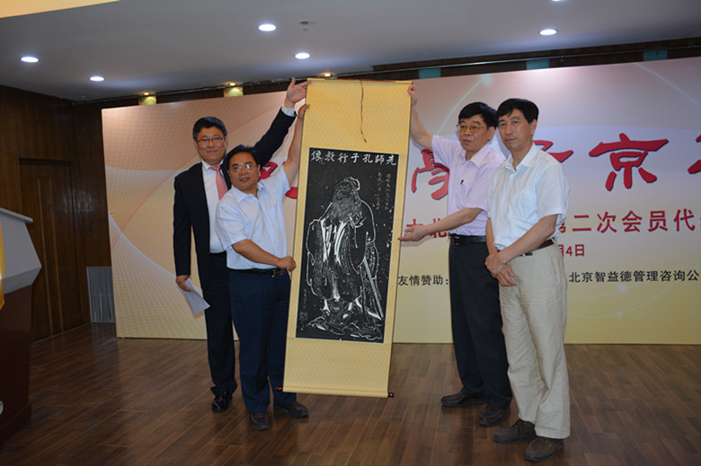 荆兆勋向北京校友会授牌,赠送《先师孔子行教像》,并作重要讲话。荆兆勋指出,多年来,广大北京校友秉承母校“学而不厌,诲人不倦”的校训,拼搏进取,努力工作,取得了骄人的业绩,成为各个领域的骨干力量和优秀人才,为首都建设和国家发展贡献了宝贵力量,为母校赢得了良好的社会声誉。北京校友会自成立以来,为联络和服务在京校友,支持母校发展,付出了辛勤的劳动。在本次校友会换届工作中,筹备委员会的各位校友都付出了心血和汗水。