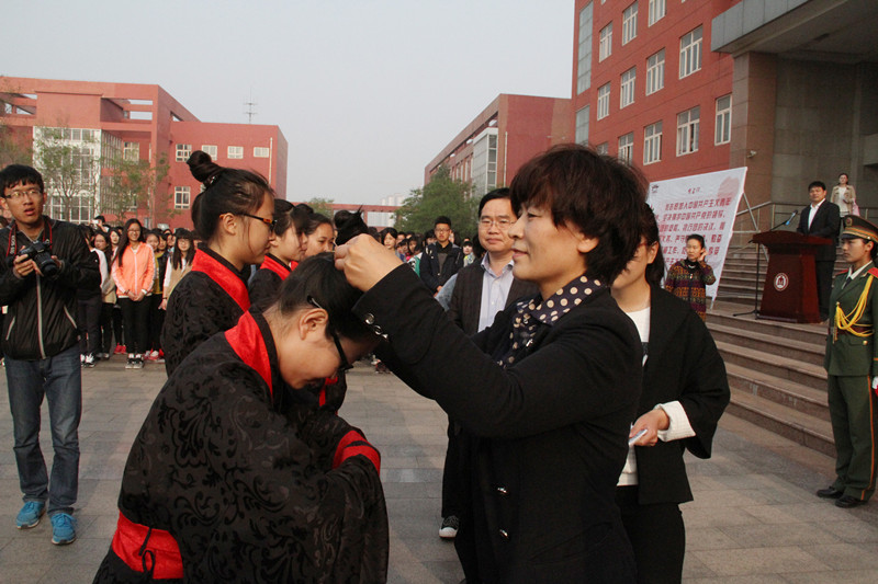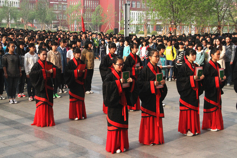 4月30日,把传统文化渗透进思想政治教育,引导学生树立传统文化认同、增强民族文化自信,进一步强化社会主义核心价值观教育。由日照校区学生工作办公室主办纪念五四运动96周年暨“迈入青春门•走好成人路”五四成人礼活动。副校长康淑敏出席活动,四千余名师生参加仪式。