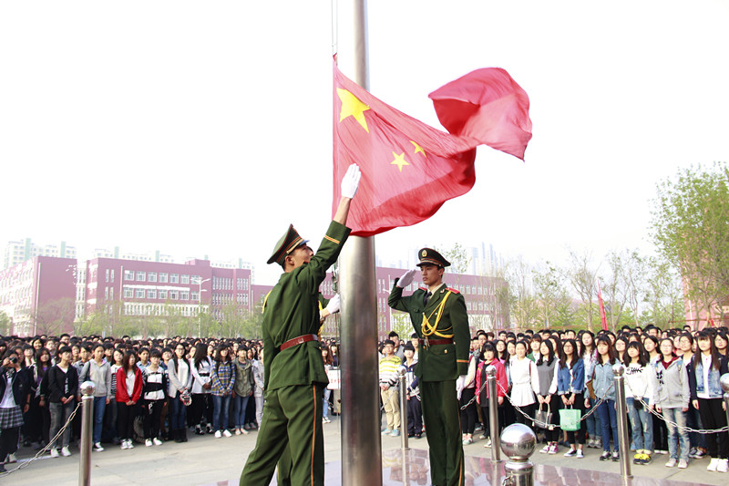 在庄严的升国旗仪式中四千余名青年团员和团干部重温入团誓词,发出铮铮青春誓言。8名18岁学生着汉服肃立,共同迎来了属于自己的“成人礼”与会领导为其插簪,并赠予成人纪念证章。