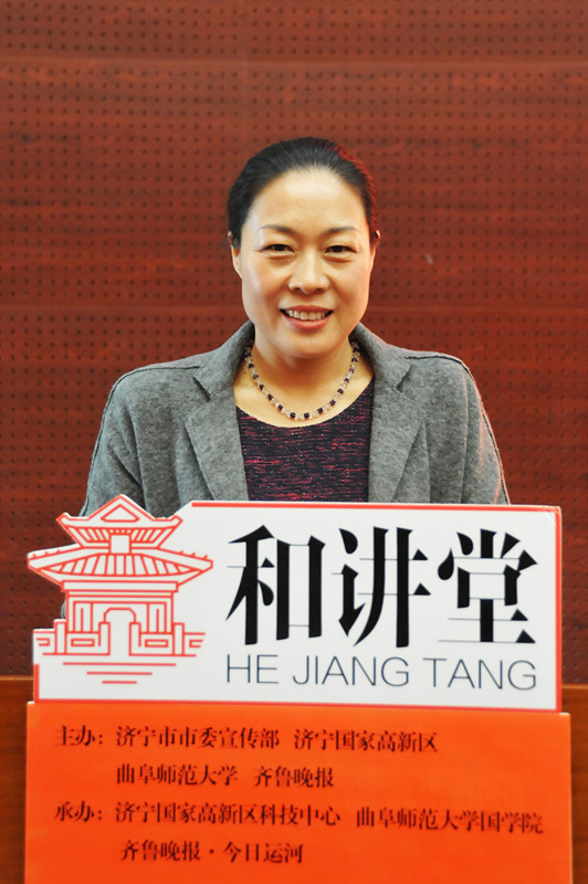 3月21日,齐鲁晚报《今日运河》创刊十周年暨“和讲堂”开讲仪式在济宁高新区科技图书馆举行。济宁市委宣传部、济宁高新区、我校宣传部、齐鲁晚报负责人等出席活动并一起启动“和讲堂”。“和讲堂”首期主讲人由我校国学院教授王曰美担纲,主讲题目为《孔子修身思想的当下价值》。她将儒家思想与当下现实社会相结合,使中华传统文化更具普及性,不同年龄层次、不同行业、不同文化背景的市民纷纷前来聆听,受益匪浅。