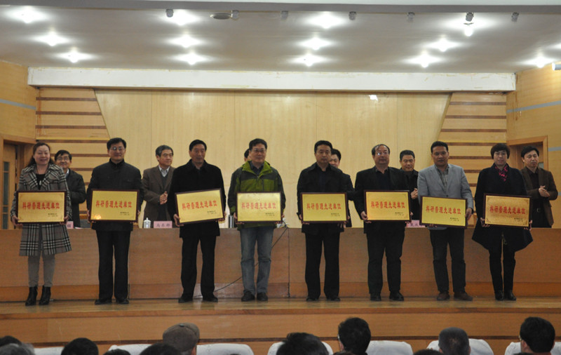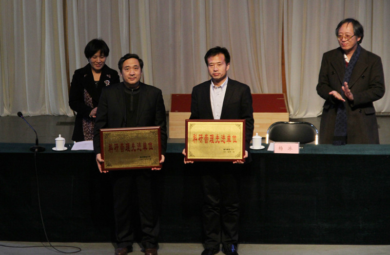 副校长马东骅宣读了《关于表彰科研管理先进单位的决定》,化学与化工学院、工学院、生命科学学院、数学科学学院、文学院、历史文化学院、经济学院、孔子文化研究院、体育科学学院、外国语学院等10个单位受到表彰。
