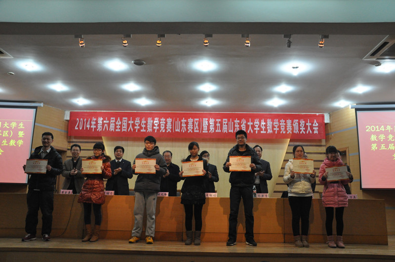 12月13日上午,由山东数学会主办、我校承办的第六届全国大学生数学竞赛(山东赛区)暨第五届山东省大学生数学竞赛颁奖大会在我校孔子会堂隆重举行。我校副校长王继锁、省科协办公室主任邵新贵等出席大会,获奖单位、教师、学生代表等参加大会,大会由山东数学会秘书长崔玉泉主持。