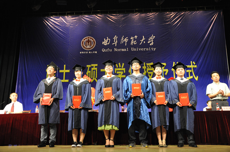 伴随着欢乐的乐曲,16位博士学位获得者、1189位全日制硕士学位获得者走上主席台,校长傅永聚逐一为他们颁发学位证书,并拨苏正冠,合影留念。