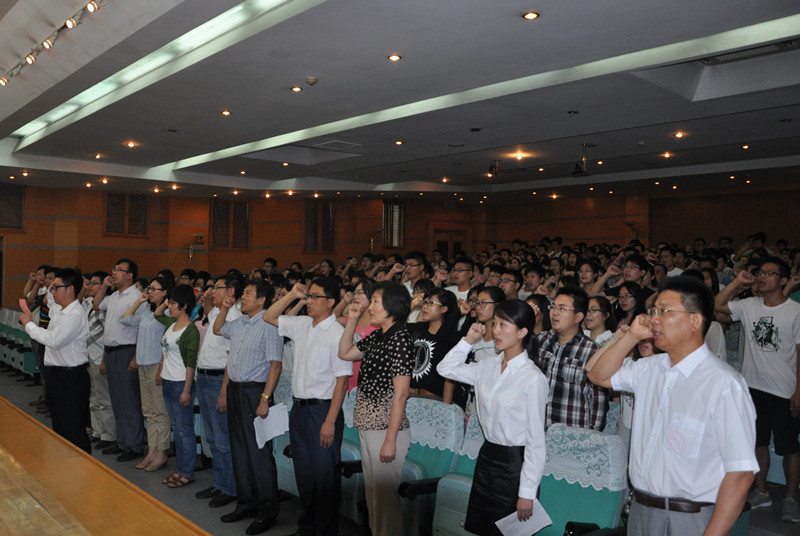 在中国共产党建党九十三周年即将到来之际,620日下午,我校在两校区分别举行新党员入党宣誓仪式。党委副书记刘新生、纪委书记郭辰夫出席大会并讲话。组织部部长马恩,日照校区学生工作办公室主任、机关党总支书记孔令军主持大会。