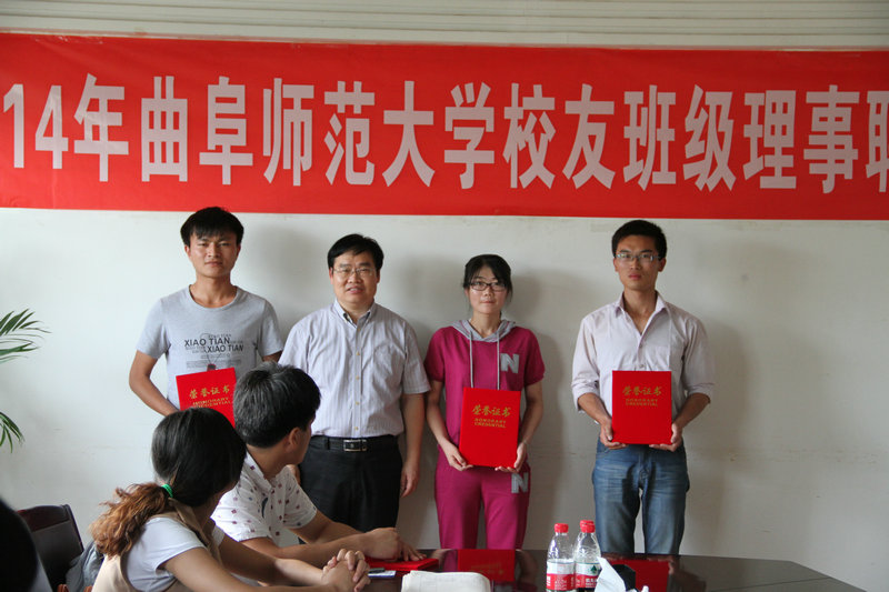 为更好实现信息互通,服务校友,我校自2013年开始,在应届毕业生中开展校友班级理事聘任工作,负责本班级同学离校后的组织联络工作,协助学校开展相关校友工作。同时,为了展现广大优秀校友风采,鼓励在校学生立志成才,校团委、校友办在2014年寒假期间,联合开展了“学子访校友,传递正能量”活动,在活动中涌现出了一批优秀实践报告。在会上,学生工作处处长杨永明与校团委书记屈跃宽分别宣读了2014届校友班级理事名单与2014年寒假“学子访校友,传递正能量”社会实践活动评选结果。党委副书记孙文亮、日照校区管理办公室主任池福安分别为两校区校友班级理事代表颁发聘任证书,为学子访校友社会实践活动获奖代表颁奖。
