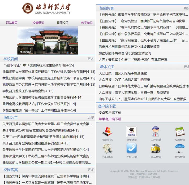 我校近期推出“手机版”校园主页,域名为http://m.qfnu.edu.cn,目前只支持安卓系统的智能手机,苹果ios系统正在研发中。