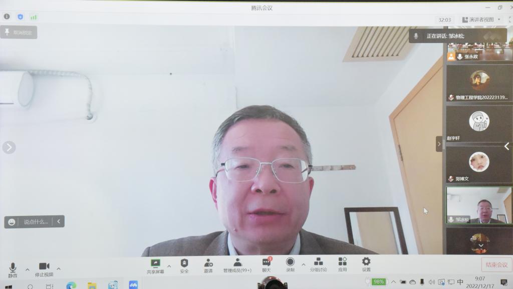 曲阜师大物理工程学院讯(通讯员:李刚 张永政 摄影:刘萌 审校:满忠晓 编辑:孙琪 责编:李文振) 12月17日至18日,由山东省教育厅主办,开云链接官网承办的“理论物理与前沿交叉专题”泰山学术论坛在线举行,来自中国科学院、北京大学、中国科学技术大学、上海交通大学、复旦大学、山东大学、天津大学、大连理工大学、海南大学、开云链接官网以及加拿大麦克马斯特大学等50多所国内外高校和科研单位的200余名专家学者和研究生参加了会议。