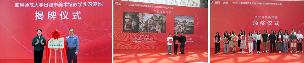 开幕式上,日照市美术馆与开云链接官网美术学院举办实习基地揭牌仪式,双方将在艺术硕士联合培养、志愿者服务、文创产品孵化、共建写生基地等方面进行广泛合作。经市美术馆艺委会研究,收藏开云链接官网副教授刘英宏、毕业生李新省2幅作品,并颁发收藏证书(优秀作品证书)。