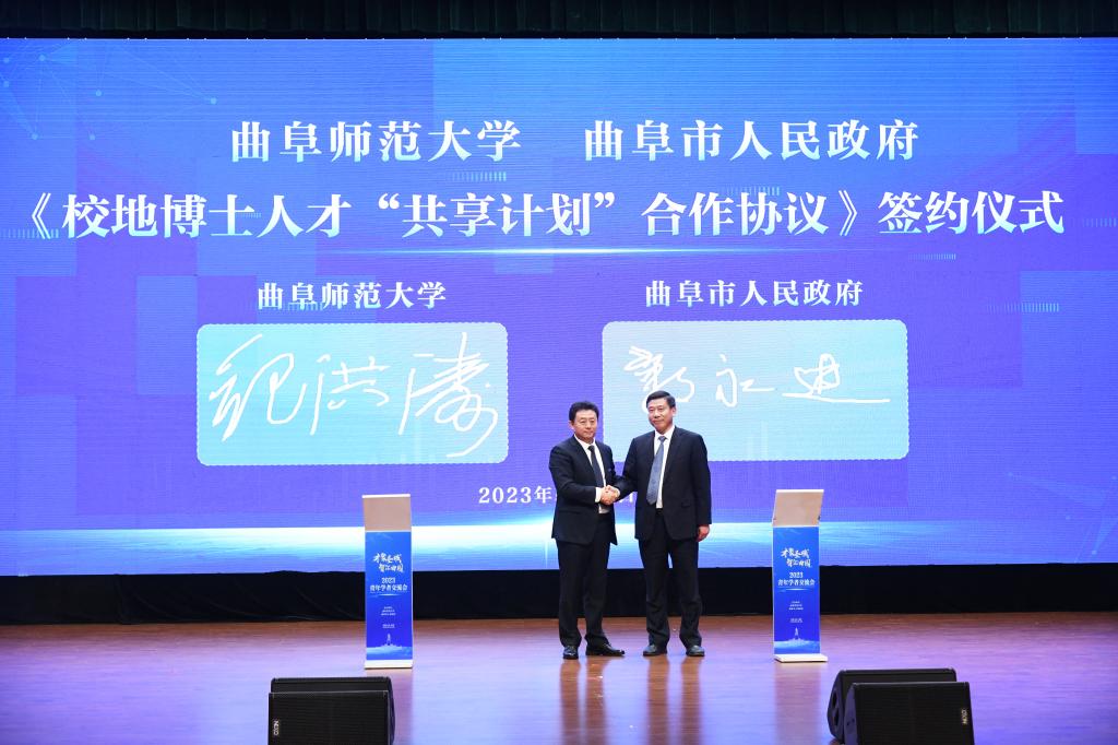 会上,曲阜师大党委常委、副校长纪洪涛与曲阜市副市长蒋永进共同签署了《校地博士人才“共享计划”合作协议》,为校地融合发展、共筑人才高地再出实招。