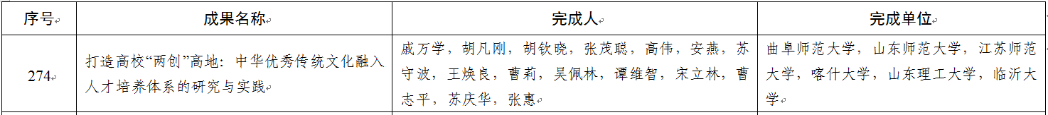 教务处讯 近日,教育部发布《关于批准2022年国家级教学成果奖获奖项目的决定》,开云链接官网戚万学教授主持的“打造高校‘两创’高地:中华优秀传统文化融入人才培养体系的研究与实践”成果,荣获国家级教学成果奖二等奖,这也是曲阜师大连续两届荣获国家级教学成果奖。