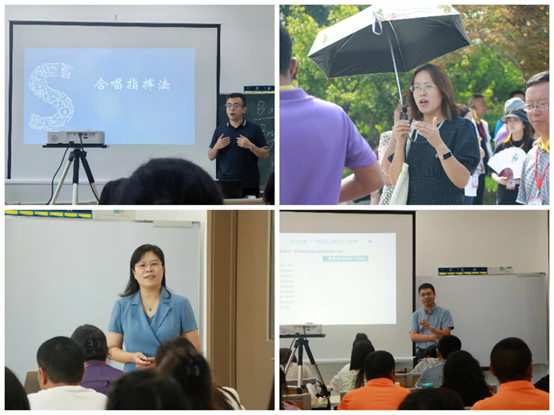 根据培训目标和培训对象的实际情况,本次培训采用“理论学习+案例分析+现场教学+实践体验”等多元组合方式,穿插团队讨论、课堂观摩、工坊实践等内容,注重学思结合和问题导向。培训内容涵盖师德师风、教育法律法规、新课标背景下艺体学科素养和课堂教学策略研究与提升等诸多方面。
