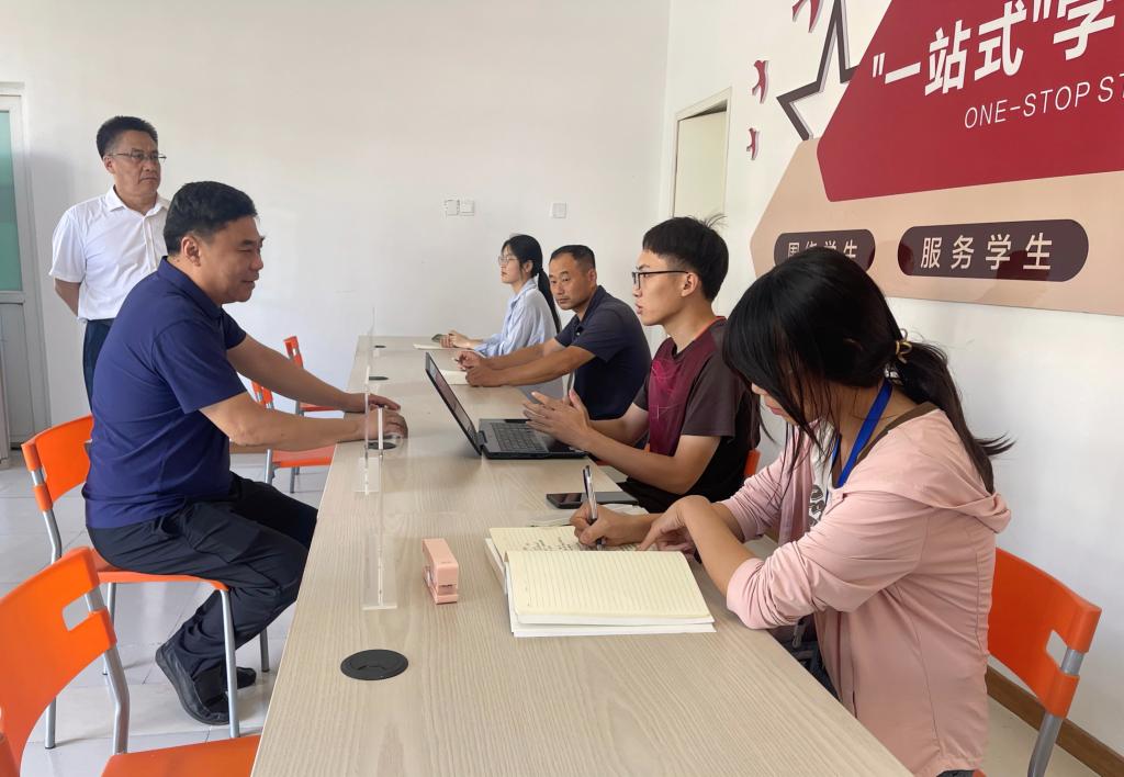 在东升园“一站式”社区服务中心,学校领导听取了中心的建设情况,对于园区物业的支持和学生工作处的建设计划、建设思路给予充分的肯定。邢书记在服务大厅“网络服务”柜台前详细了解了校园网进园区的情况、学生登录使用情况;同时,查看了“一站式”社区服务中心的“辅导员谈心谈话室”、“心理驿站”、“职业生涯工作室”,鼓励工作人员一定要为学生做好服务工作,真正把“一站式”社区服务中心建成能为学生解决实际困难的家园,发挥好“一站式”社区一线服务阵地的优势,真正做到“围绕学生、服务学生、关爱学生”。